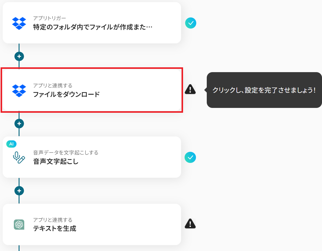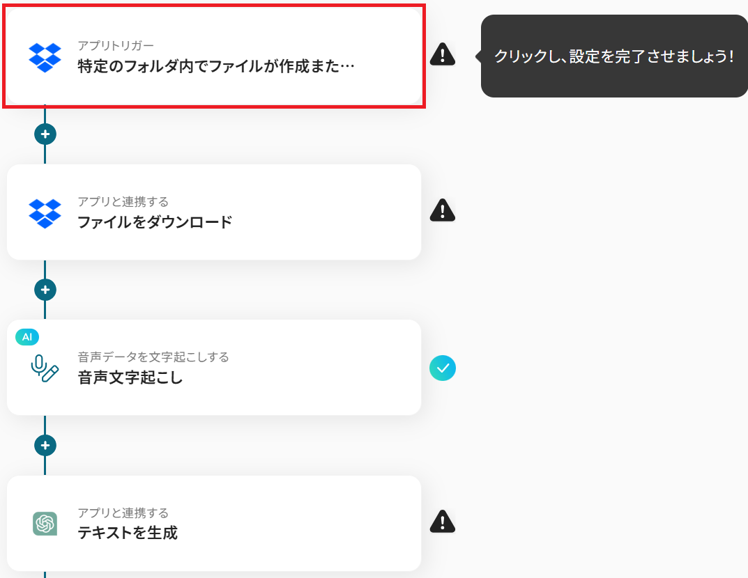 今回は「Dropboxに音声ファイルがアップロードされたら、ChatGPTで内容を要約し通知する」フローを作成していきます!
