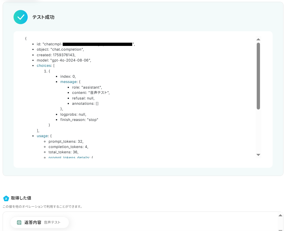 成功したら保存しましょう。ここで取得した値を次以降のステップで活用します。