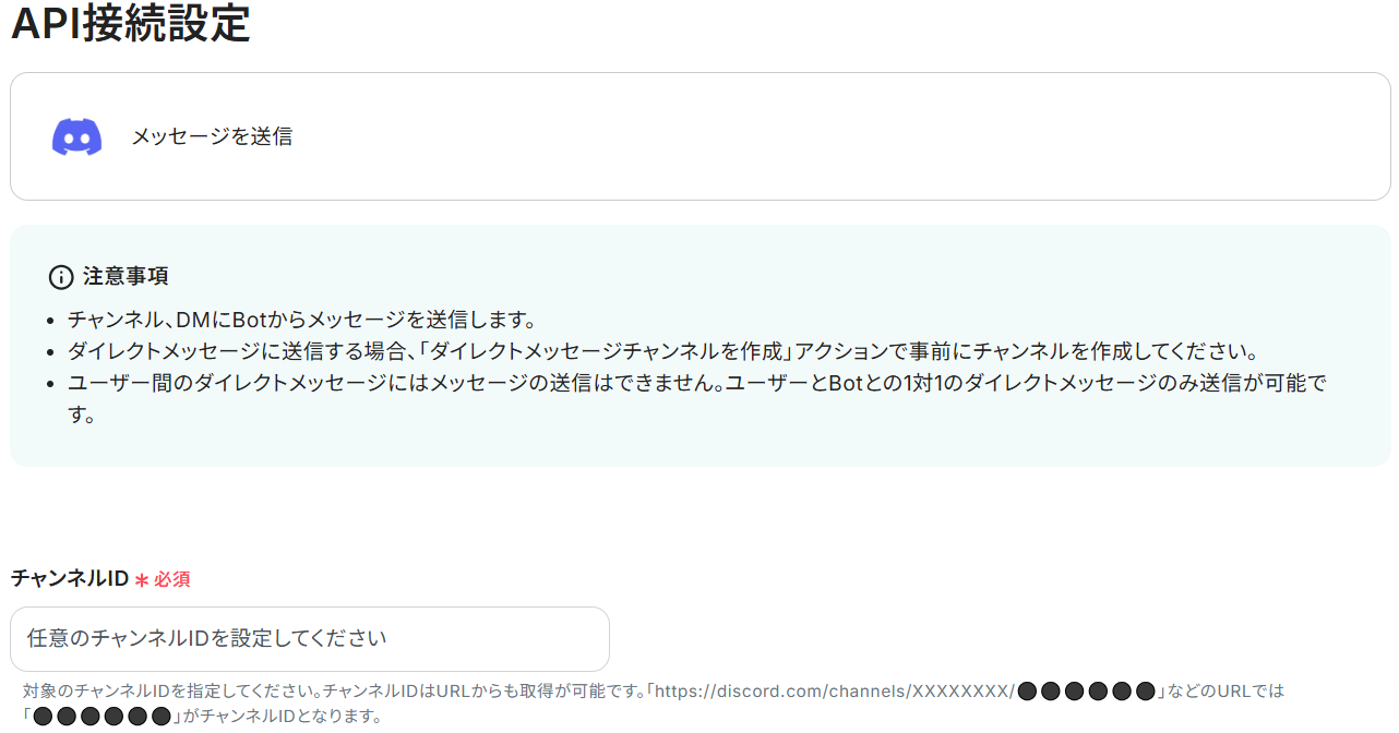 ※アクセストークンにはDiscord Developer Portalから取得したBotトークンを設定してください。