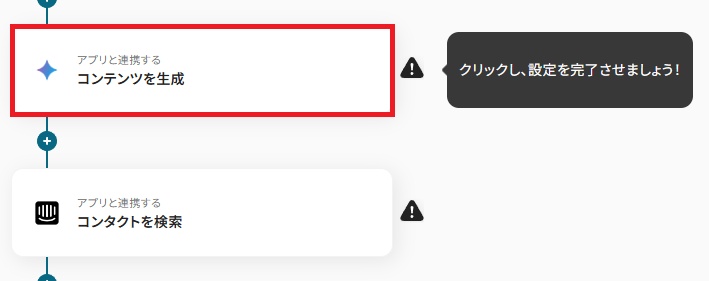 返答内容を生成する設定を、していきます。 「コンテンツを生成」をクリックしてください。