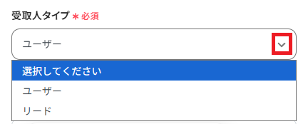 「受取人タイプ」も、プルダウンから任意で設定してください。