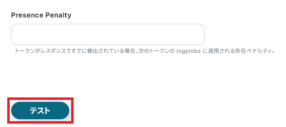 その他、必要に応じて任意で設定してください。 最後に「テスト」を実行しましょう。
