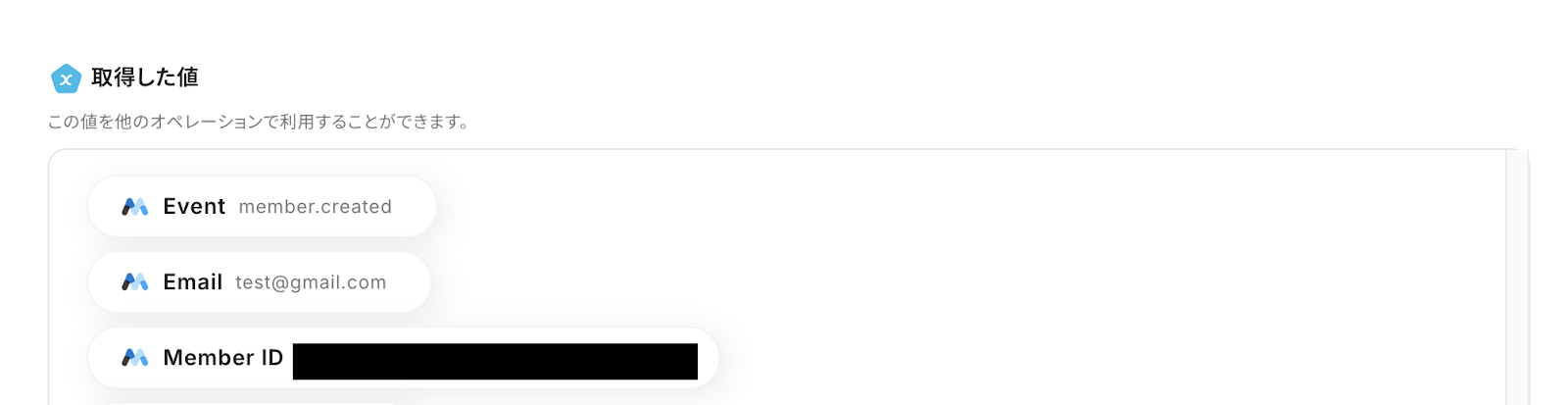 テストに成功すると「取得した値」の欄にMemberstackのデータがアウトプットされます。
