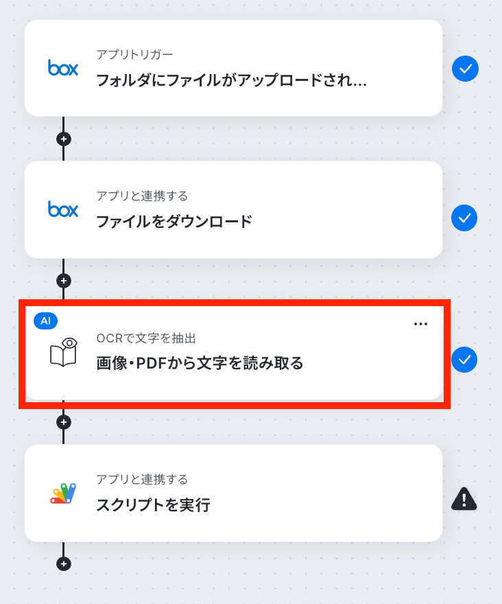 ※OCRや音声を文字起こしするAIオペレーションは、チームプラン・サクセスプラン限定の機能です。フリープランやミニプランでセットするとエラーになってしまうので、ご注意ください。
