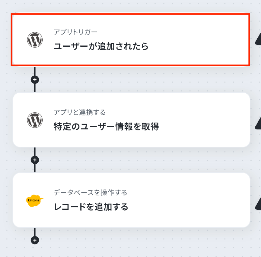 それではここから代表的な例として、WordPress.orgでユーザーが追加されたら、kintoneにレコードを自動で追加するフローを解説していきます!