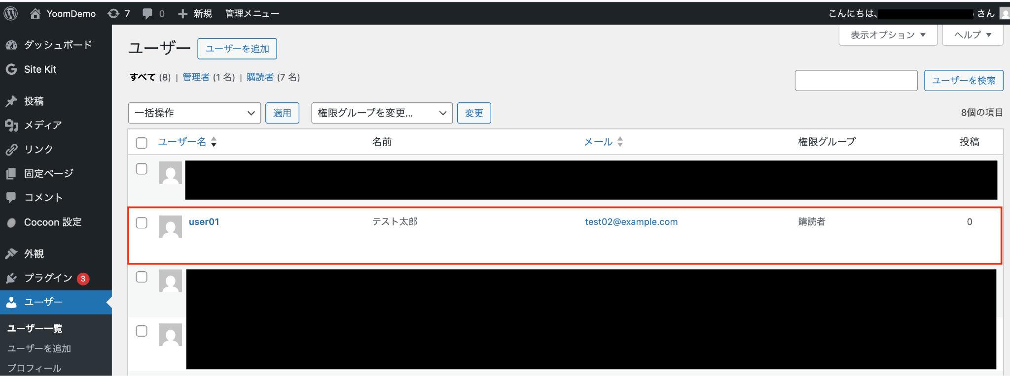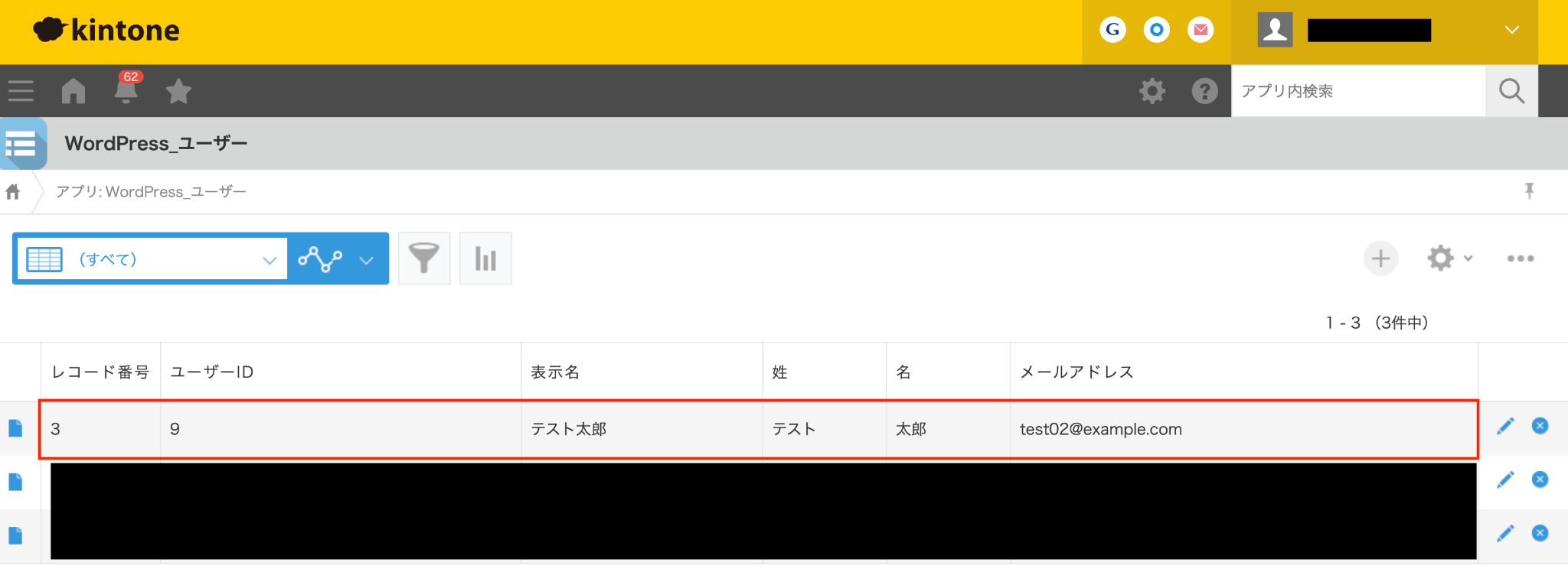 実際にWordPress.orgでユーザーを追加し、kintoneに正しく情報が追加されるかを確認してみましょう。