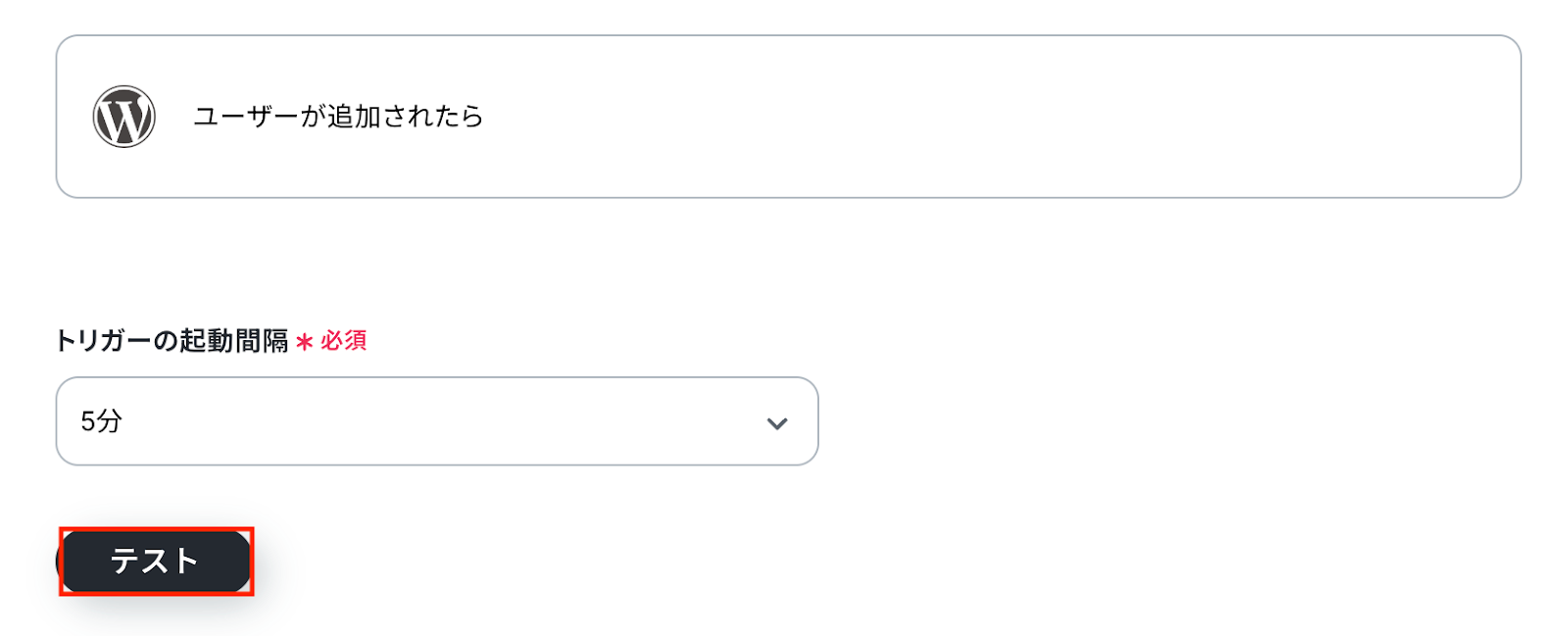 入力が完了したら、設定内容とトリガーの動作を確認するため「テスト」をクリックします。