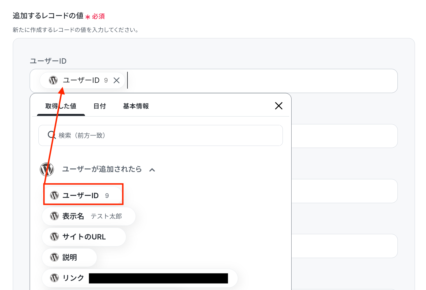 前のステップでWordPress.orgから取得した値を利用して、kintoneにユーザー情報を追加しましょう。