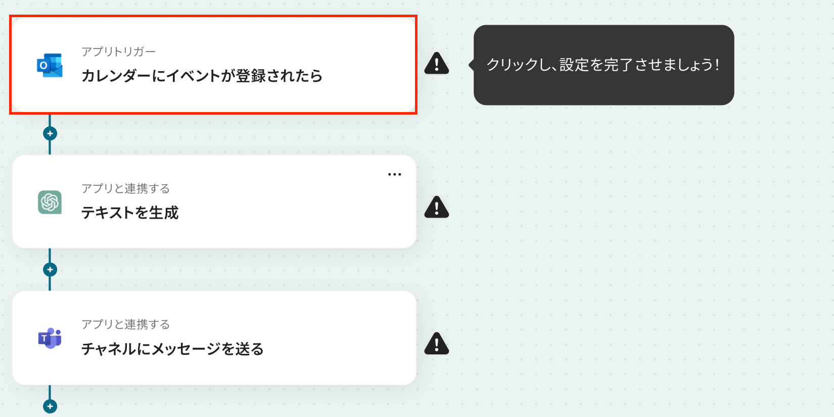 これから「Outlookのカレンダーに新しいイベントが登録されたら、AI生成したメッセージをMicrosoft Teamsに通知する」フローを設定していきます!