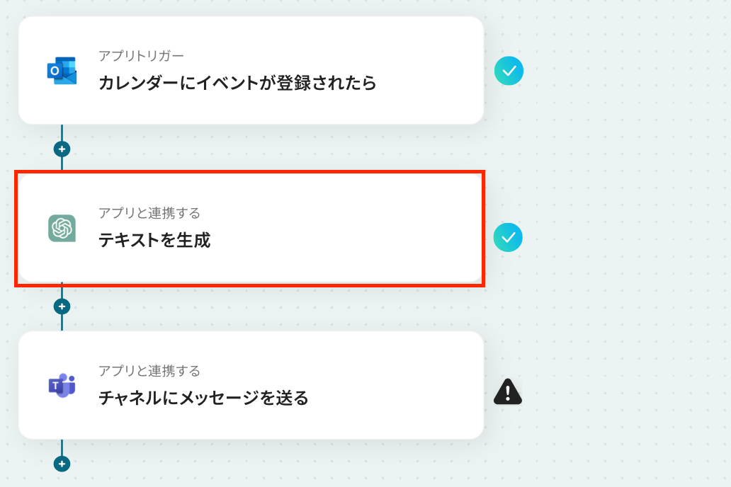 Outlookのカレンダーに新しい予定が登録されるたびに、Microsoft Teamsで関係者に通知する作業は、定型的でありながら手間がかかる業務ではないでしょうか。 特に、毎回通知内容を考えて作成するのは非効率的です。 このワークフローを活用すれば、Outlookのカレンダーへのイベント登録をきっかけに、ChatGPTでAIが最適な通知メッセージを自動で生成し、指定したMicrosoft Teamsのチャネルへ投稿する一連の流れを自動化できます。