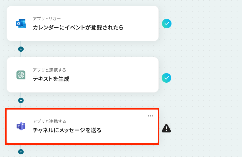 それではここから代表的な例として、Outlookのカレンダーに新しいイベントが登録されたら、AIが生成したメッセージをMicrosoft Teamsに通知するフローを解説していきます!