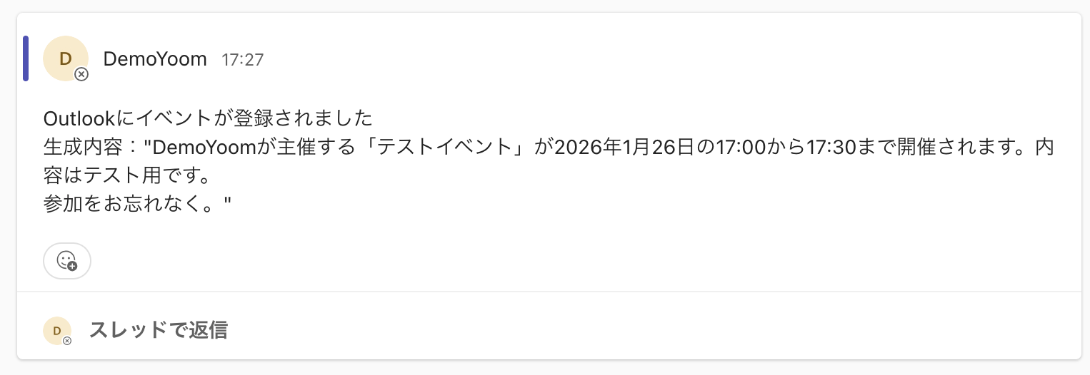 Outlookのカレンダーに新しいイベントが登録されたら、AI生成したメッセージをMicrosoft Teamsに通知する