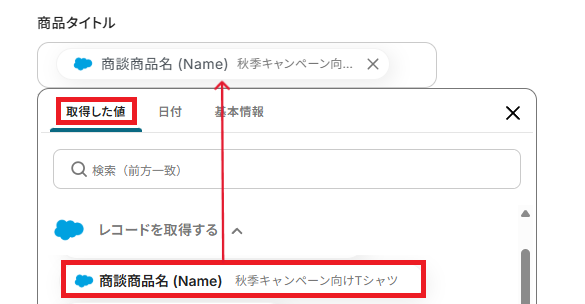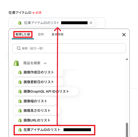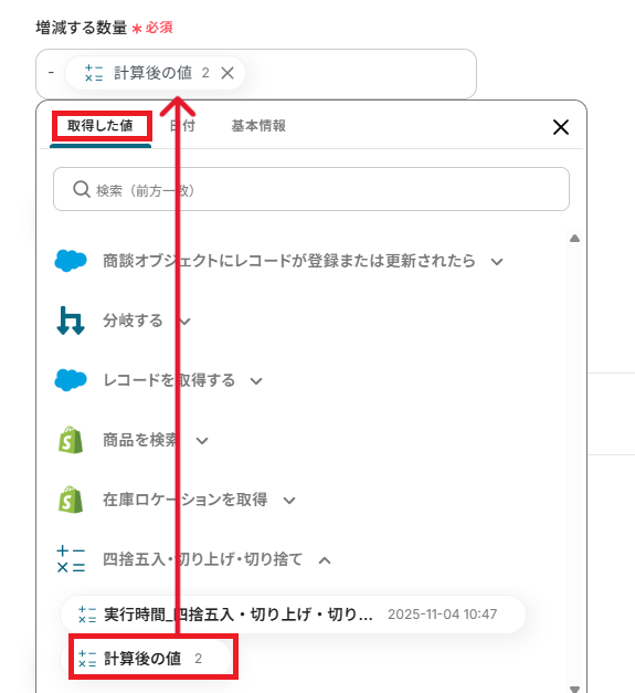 検索した商品データを基に、在庫数を取得する設定を行います。