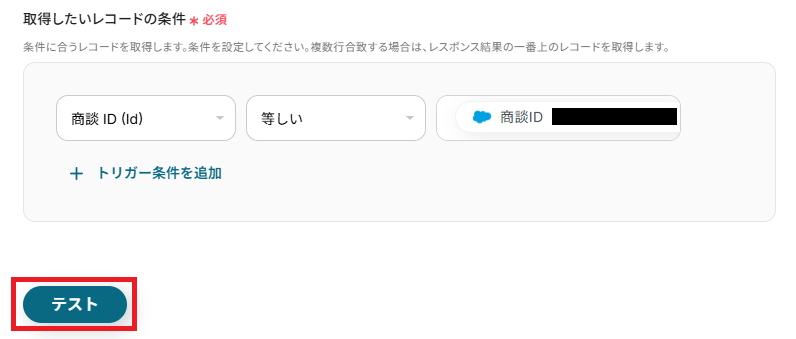 今回は商談が成立した場合にのみ処理を分岐させるため、下記画像のように設定しました。