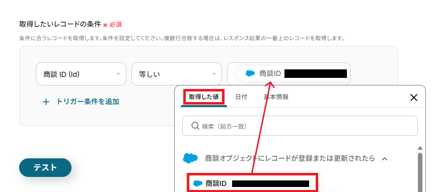 トリガーやオペレーション設定時に、「テスト」を実行して取得した値のことを指します。