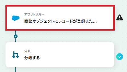 - オペレーション:「商談オブジェクトにレコードが登録または更新されたら」
