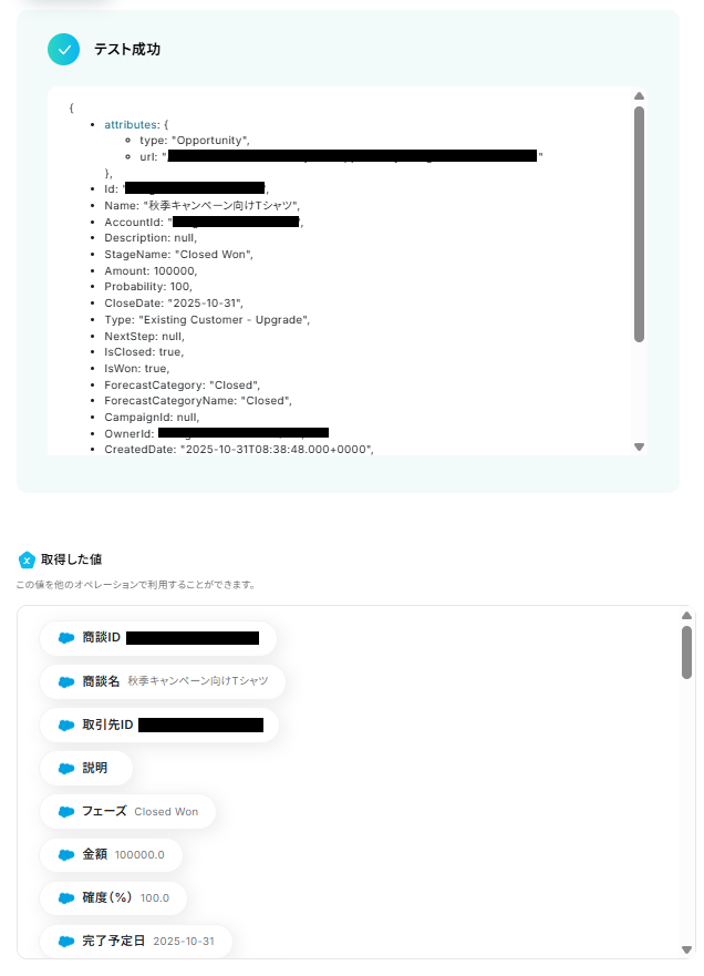 実際に商談オブジェクトにレコードを登録または更新する必要があるので、Salesforceで実行してみましょう。