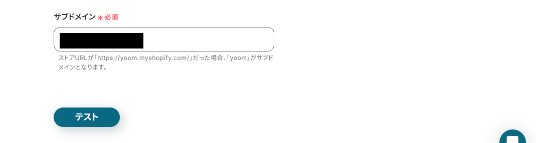 サブドメインは、枠外の注釈を参考にShopifyのストアURLから取得し入力してください。