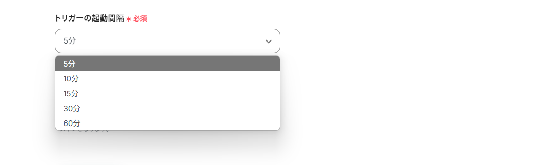 トリガーの起動タイミングは、5分、10分、15分、30分、60分のいずれかで設定できます。