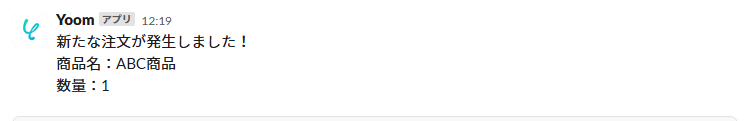 テストを実行するとShopifyに作成された注文情報が、Slackに自動通知されるので確認してください。