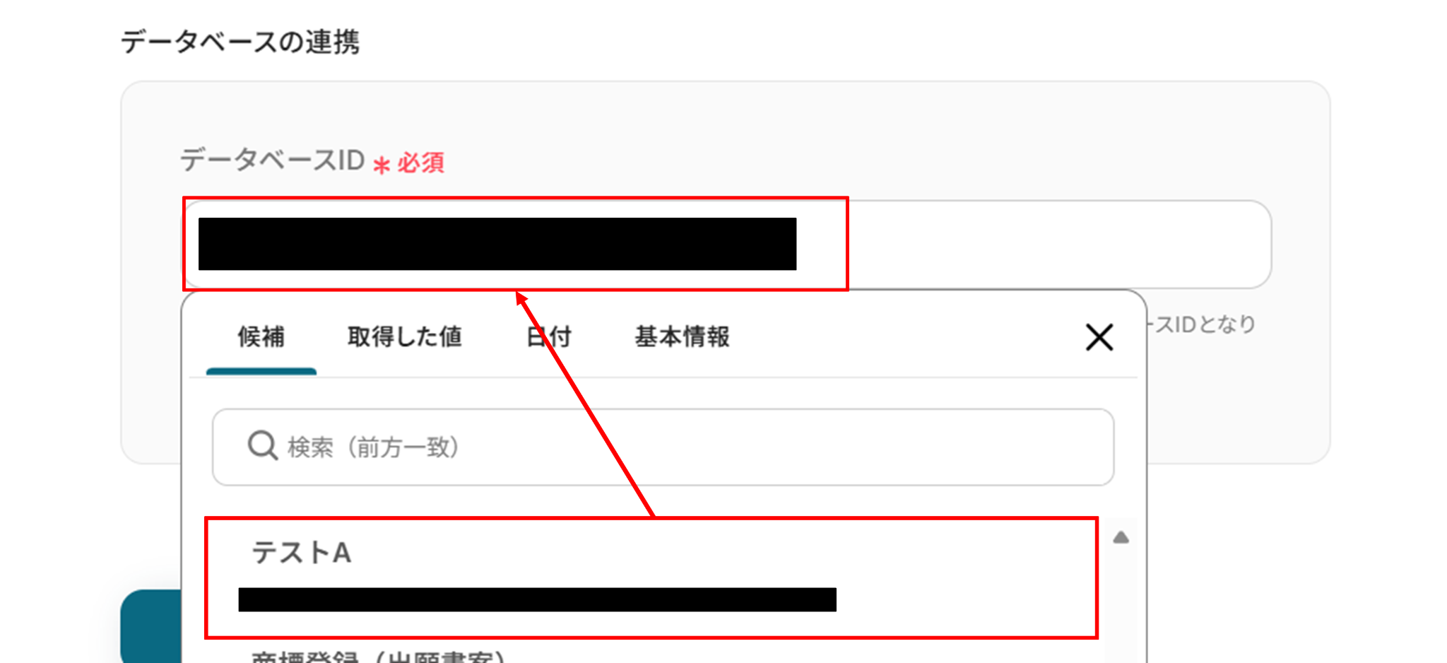 下へ進み、「データベースID」を候補から選択します。