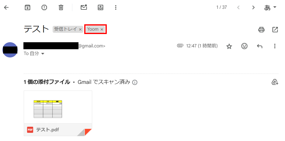 ラベルが作成できたらファイルを添付し、ラベルの条件に合うメールを送信してください。