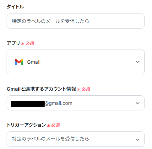 ここでは、トリガーとなるGmailのメール受信設定を行います。