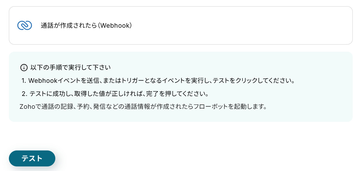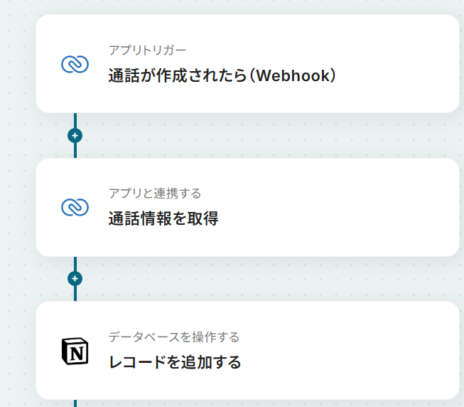 それではここから代表的な例として、Zoho CRMで通話が作成された際に、通話の情報をNotionに自動で追加するフローを解説していきます!