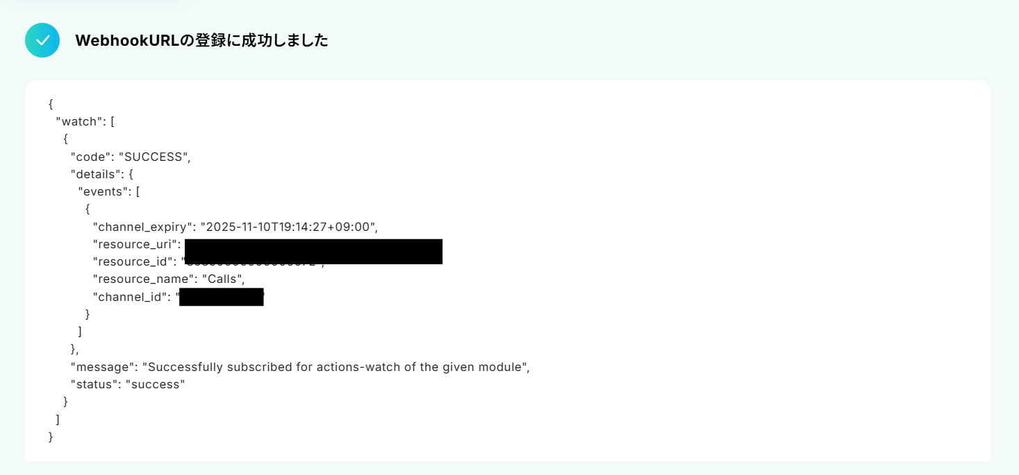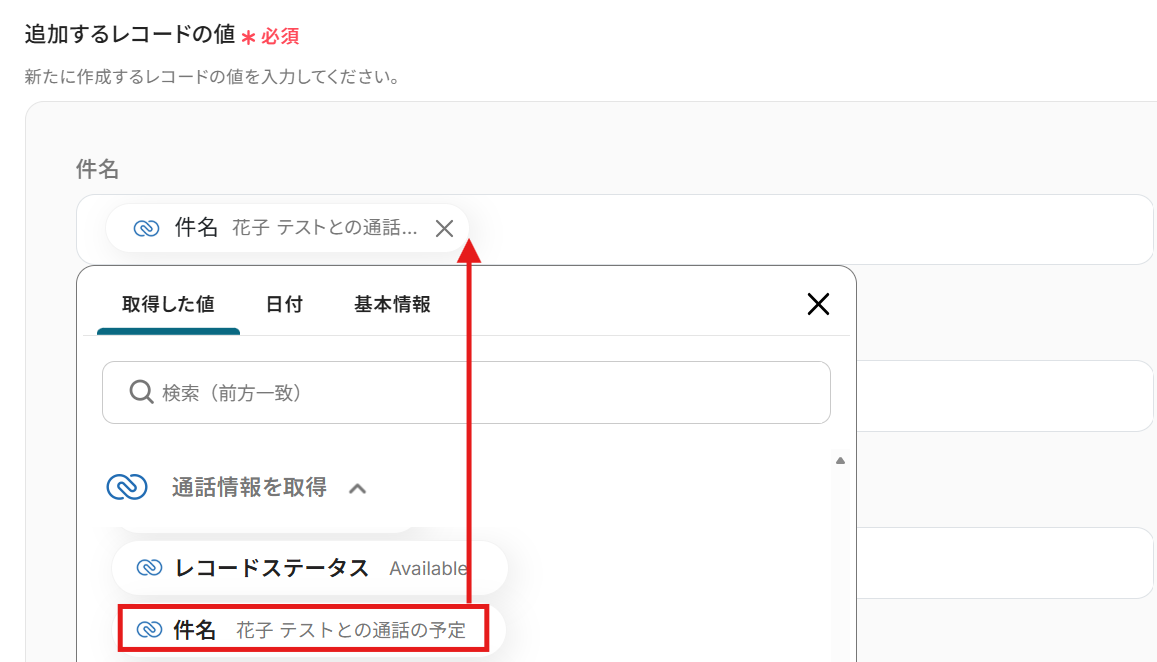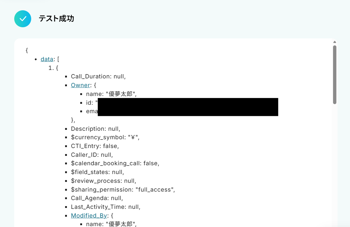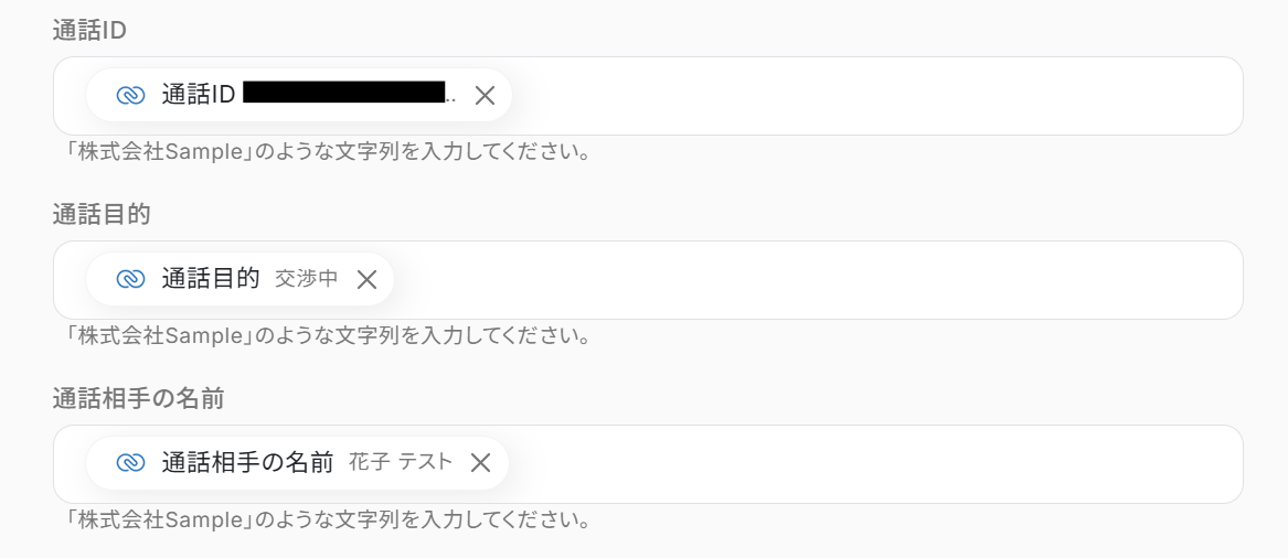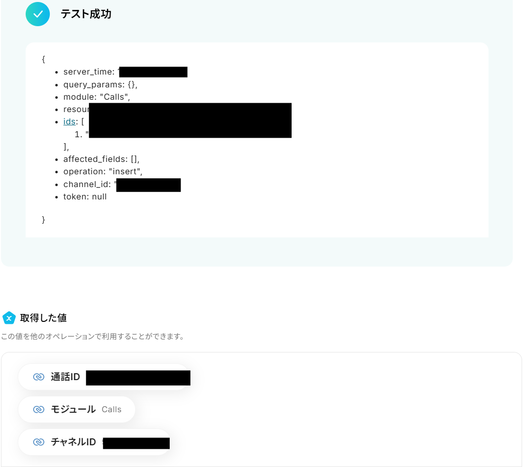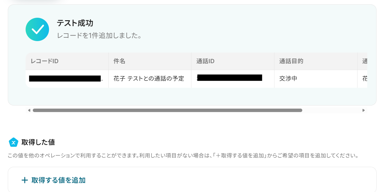 通話の詳細情報を取得できているのがわかります!ステップ5:Notionのレコード追加設定