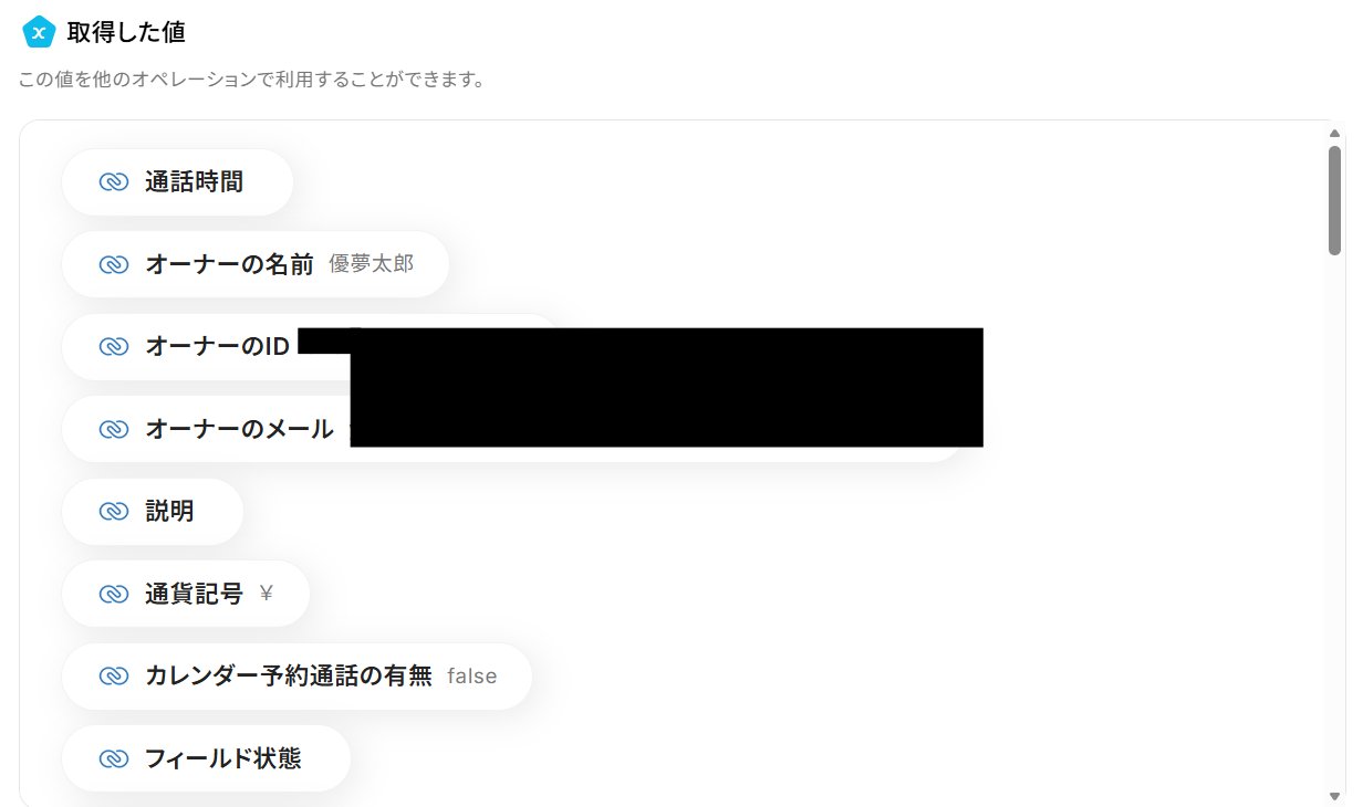 これにより、Zoho CRMの通話ごとに変わる情報をNotionへ動的に反映できます。