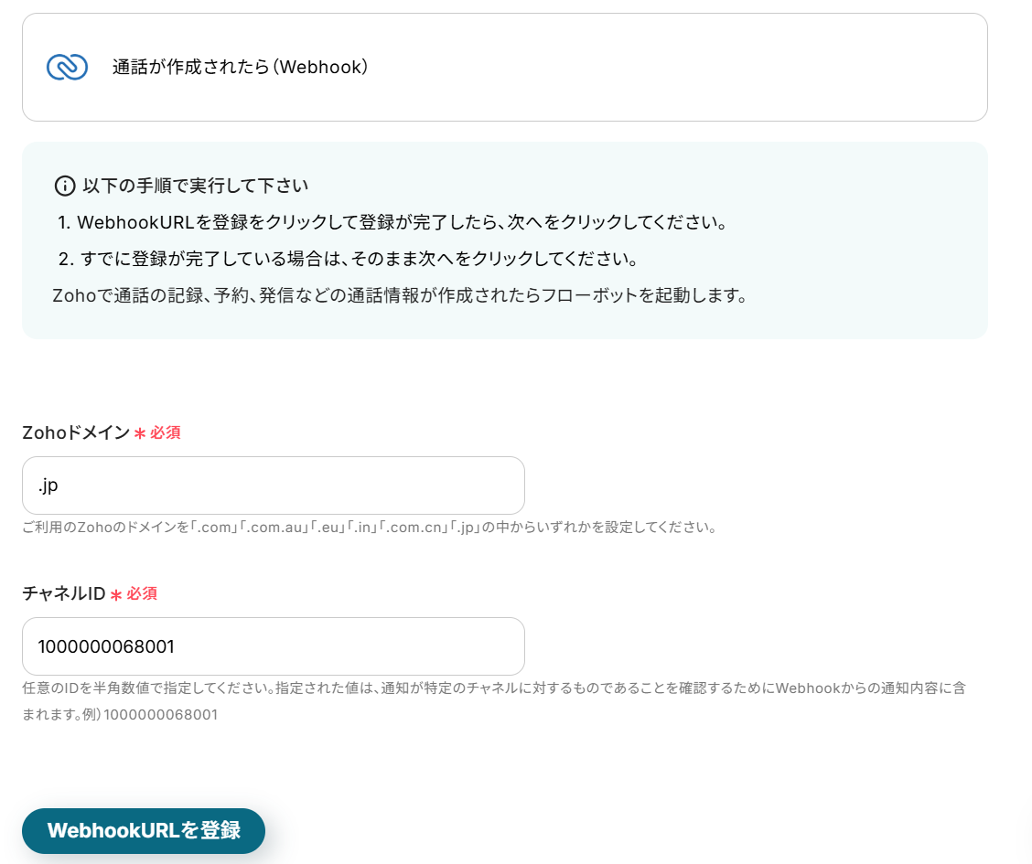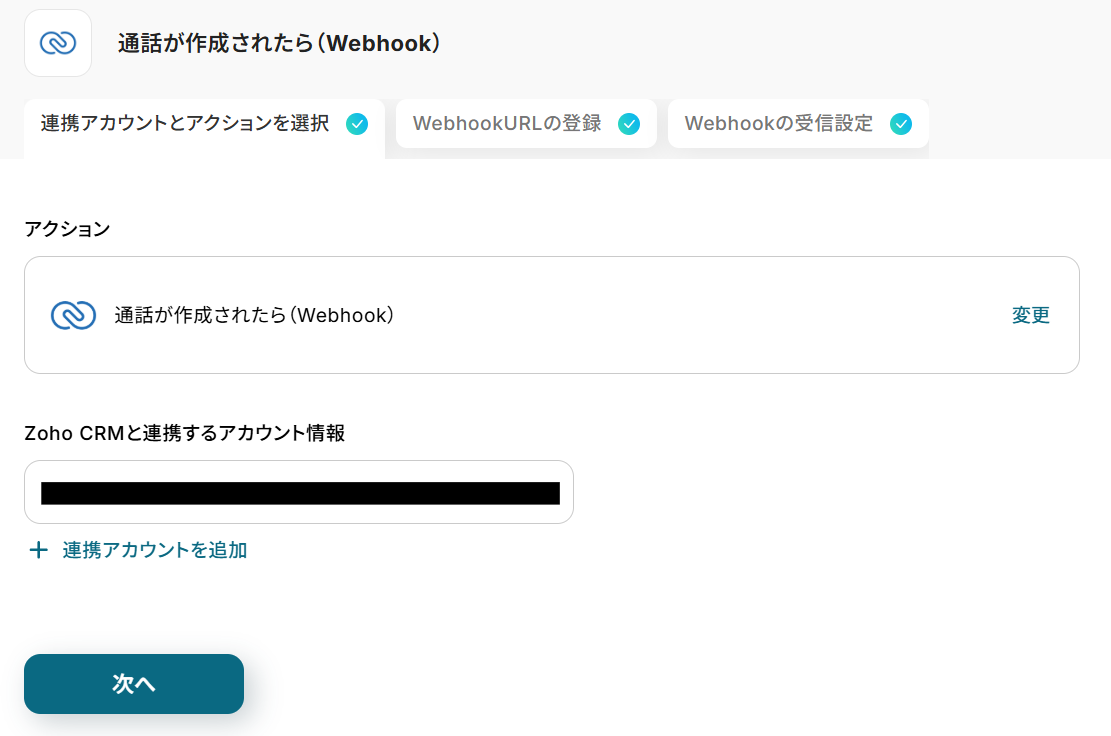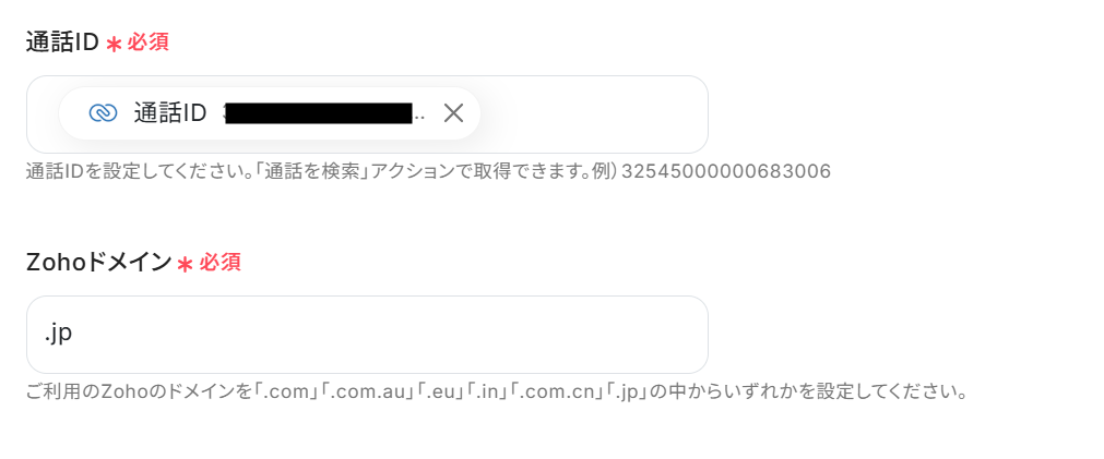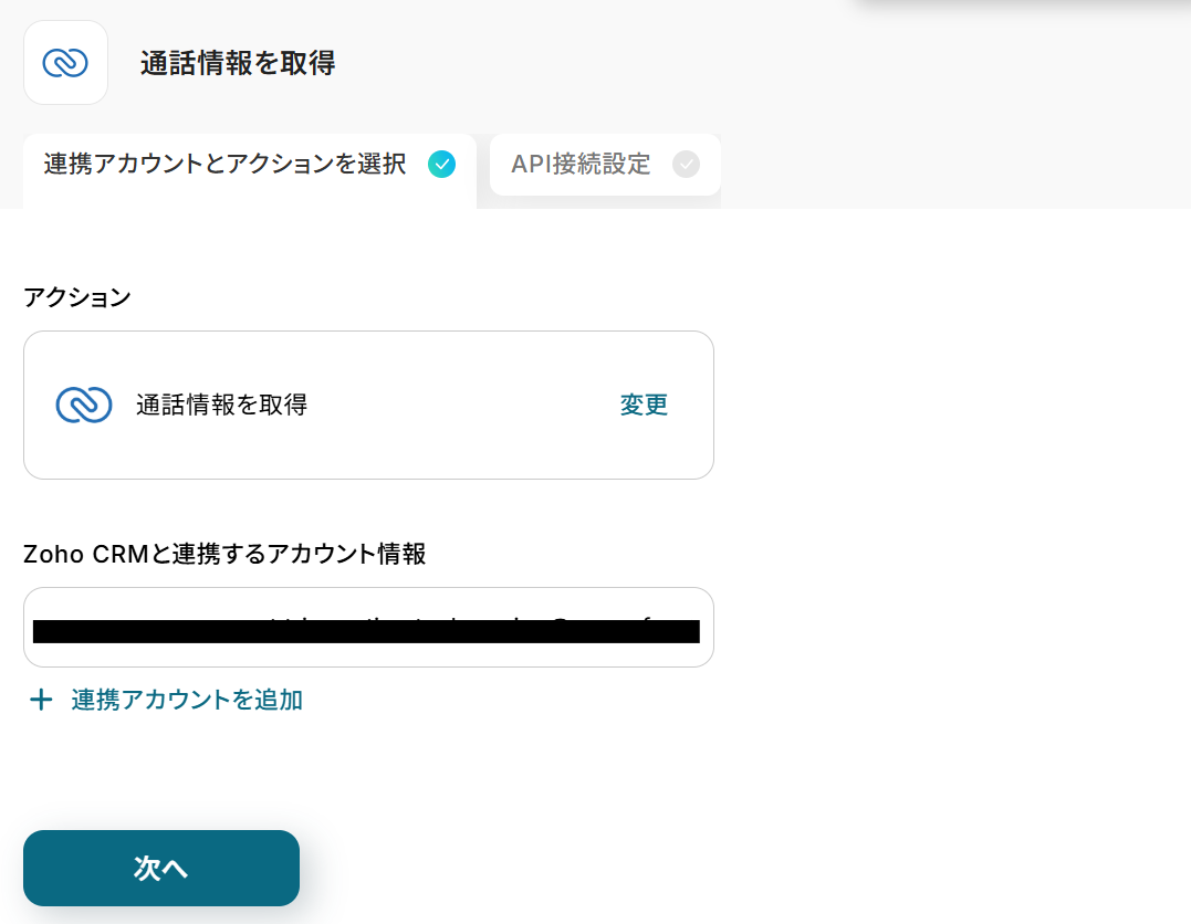 ステップ4:Zoho CRMで通話情報を取得する設定