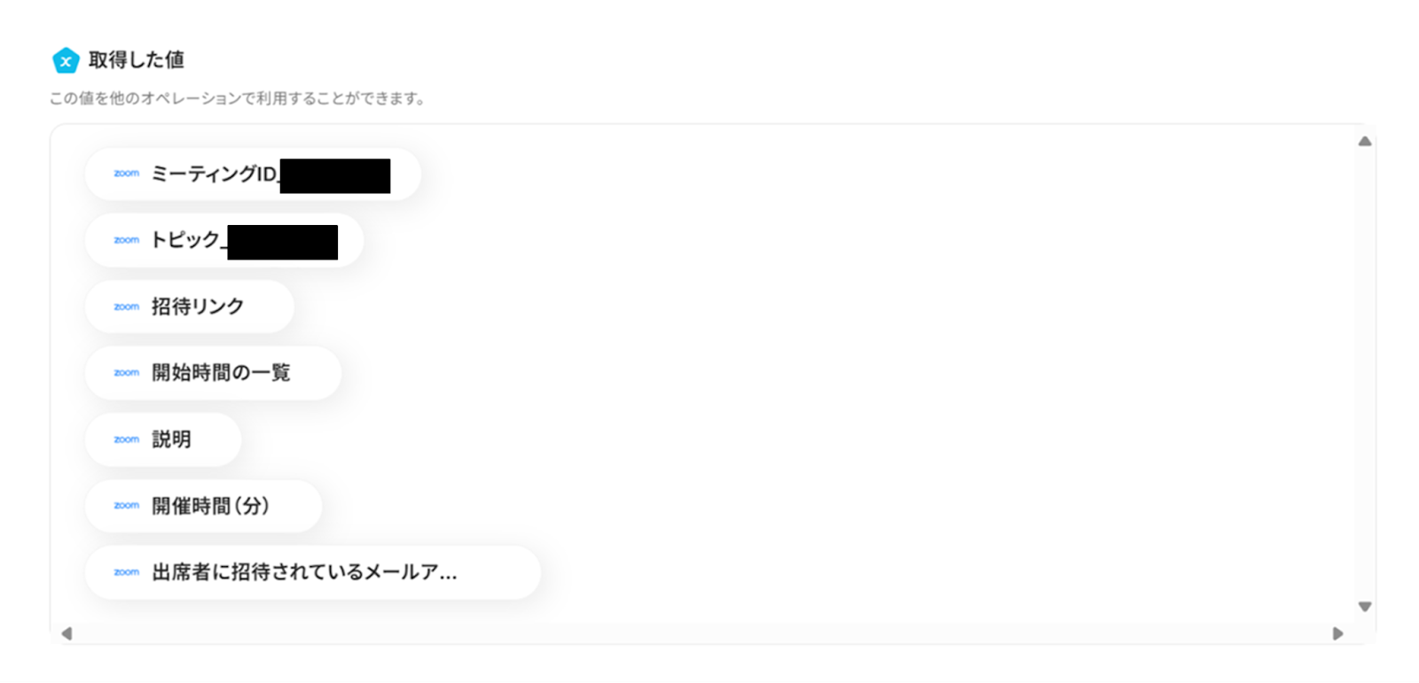 取得した値を使うことで、都度変更することなくZoomの情報を引用することができますよ!