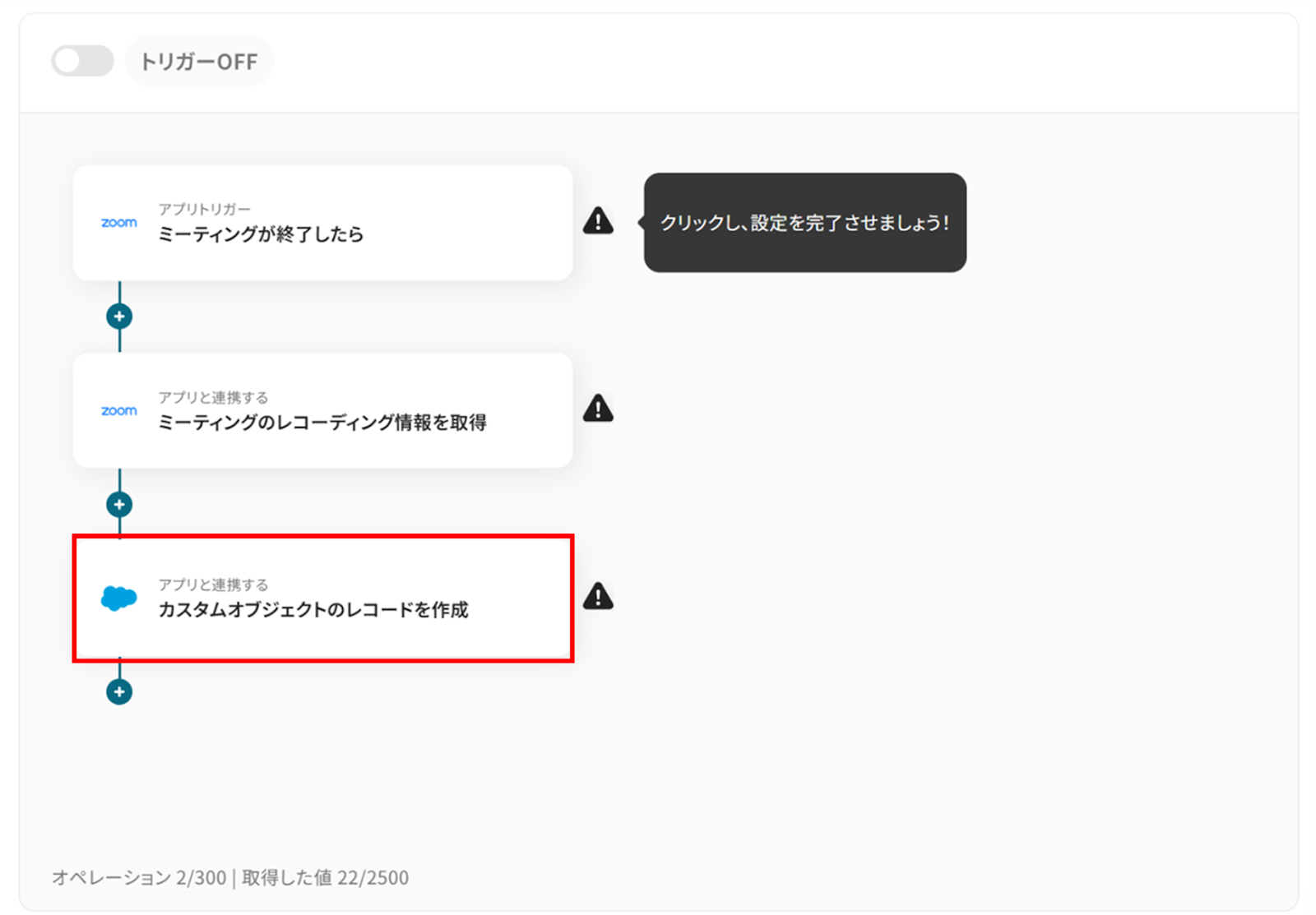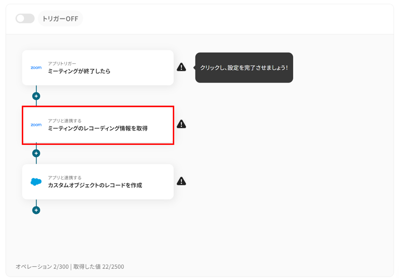 - Zoomのアプリトリガー、ミーティングのレコーディング情報を取得、Salesforceと連携し、レコードを作成する設定