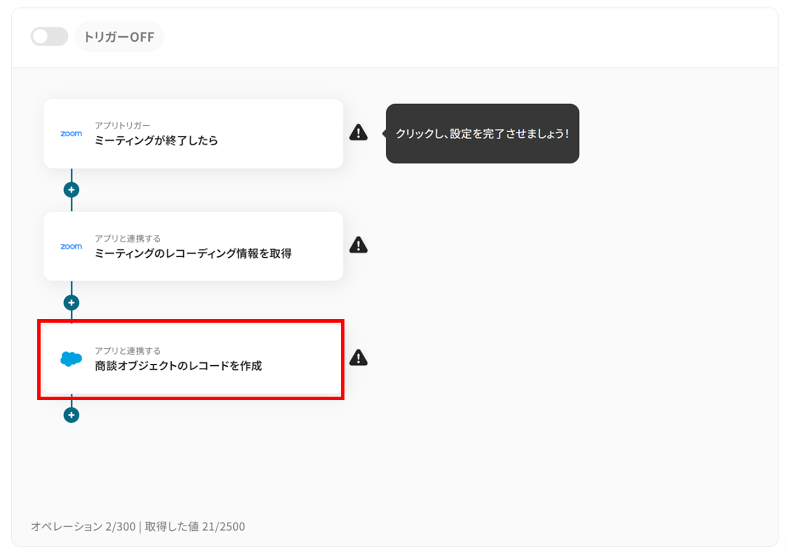 - フォームトリガー、Zoomのレコーディング情報を取得する、Salesforceのレコードを作成する設定