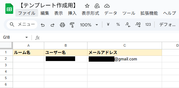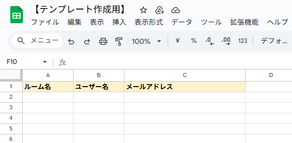 フローの作成を始める前に、あらかじめYoomと連携するGoogle スプレッドシートに、シートを作成しておきましょう!