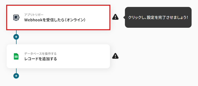 先ほどの画面で「OK」をクリックして、表示された画面のアプリトリガー「Webhookを受信したら(オンライン)」をクリックしましょう。