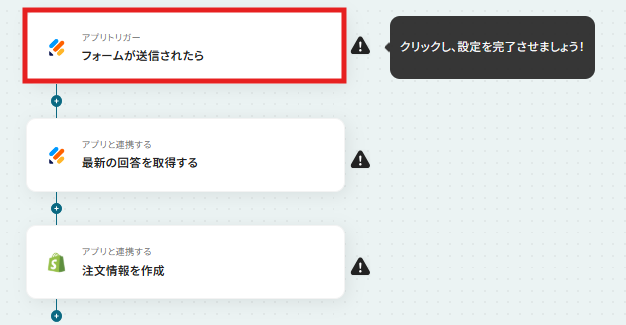 それではここから代表的な例として、Jotformでフォームが送信された際に、その内容を基にShopifyに注文情報を自動で作成するフローを解説していきます!