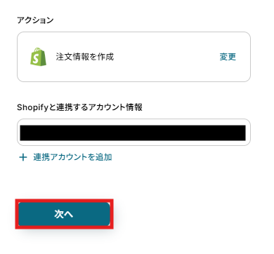ステップ5:Shopifyの注文を作成する設定