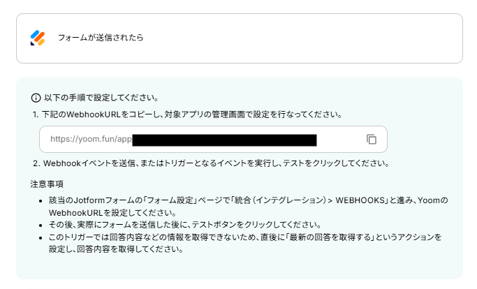 JotformのWebhook設定と最新回答取得方法についてもご確認ください。