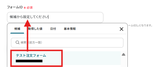 フォームIDはボックスの候補から選択が可能です。