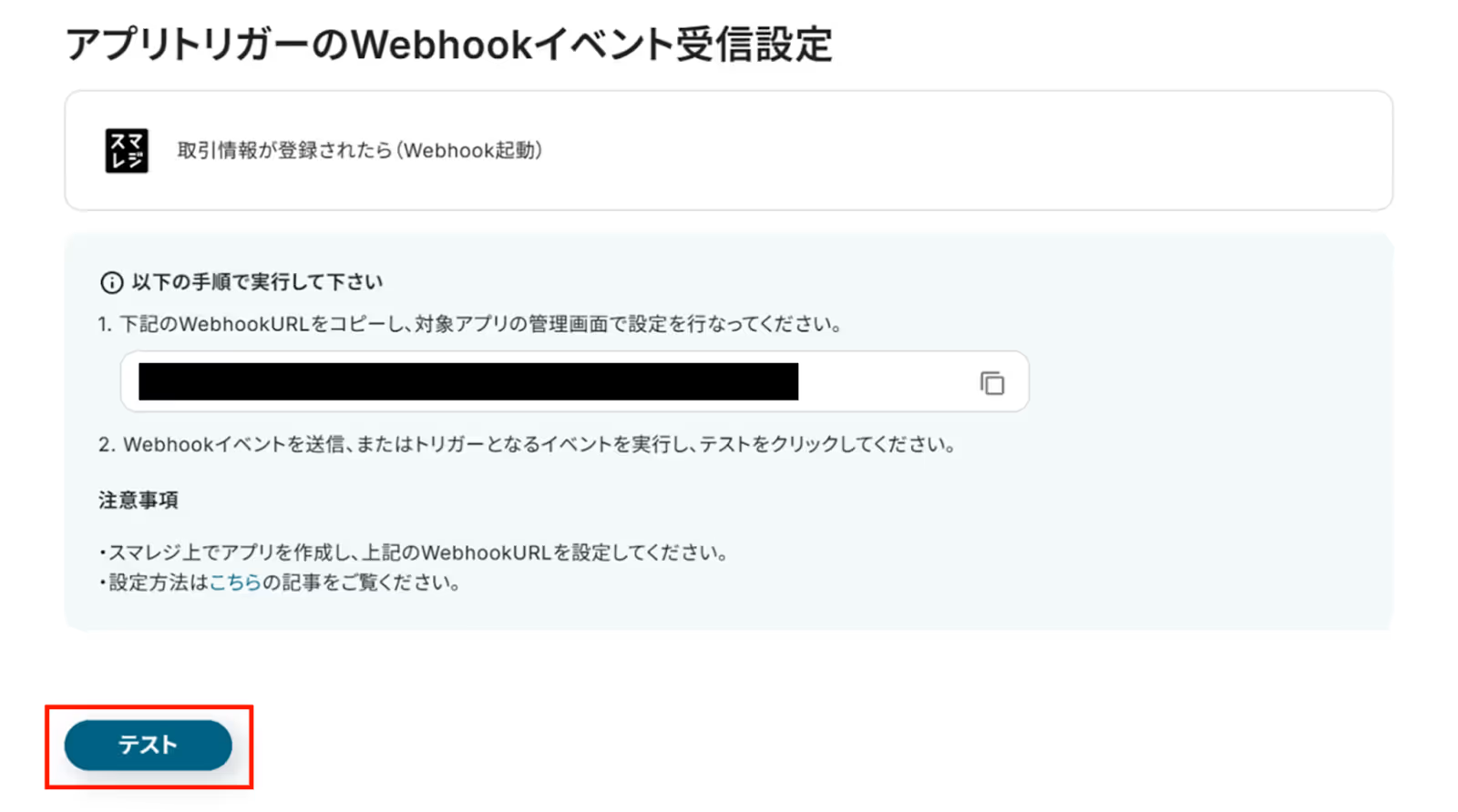 3.続いて、WebhookURLをコピーし、スマレジの管理画面で設定を行なってください。