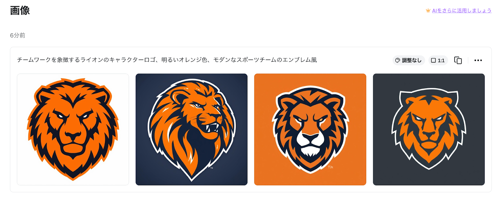 アイデア出しの段階からAIが形にしてくれるため、デザインの立案からカラー・参考画像の選定、全体のサイズ設定など、ロゴを作成するにあたって費やす時間が激減したことを実感しました。