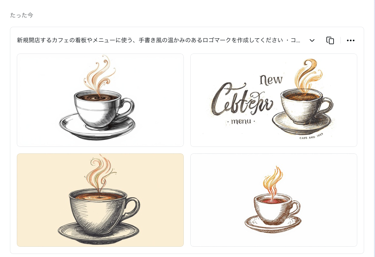 「新規開店するカフェの看板やメニューに使う、手書き風の温かみのあるロゴマークを作成してください」