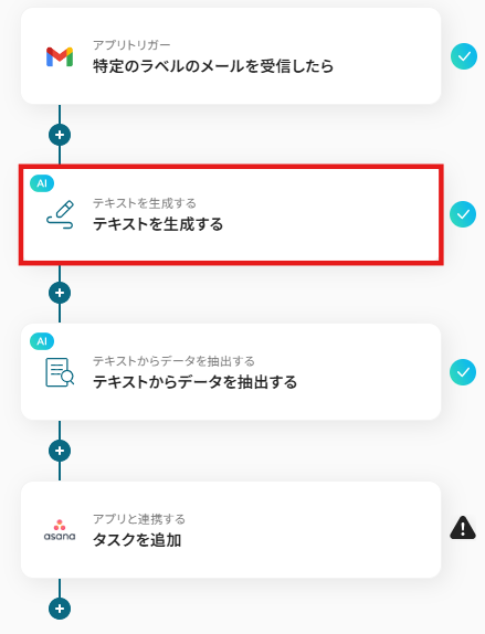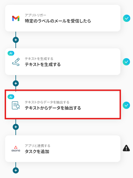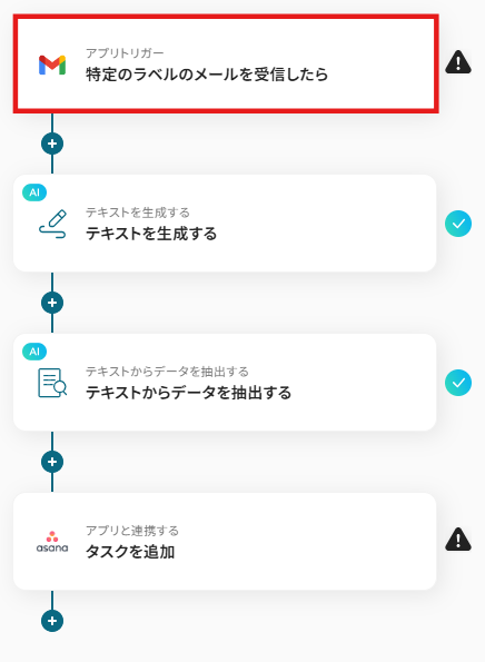 それではここから代表的な例として、Gmailで受信したメールの内容をAIで解析し、重要な情報を抽出してAsanaにタスクとして自動で登録する フローを解説していきます!