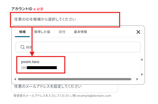 3.「アカウントID」は候補から対象のアカウントを選択してください。