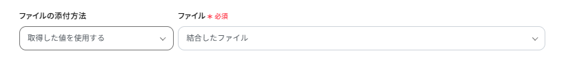 結合するファイルは、フォームで提出されたものが設定されています。