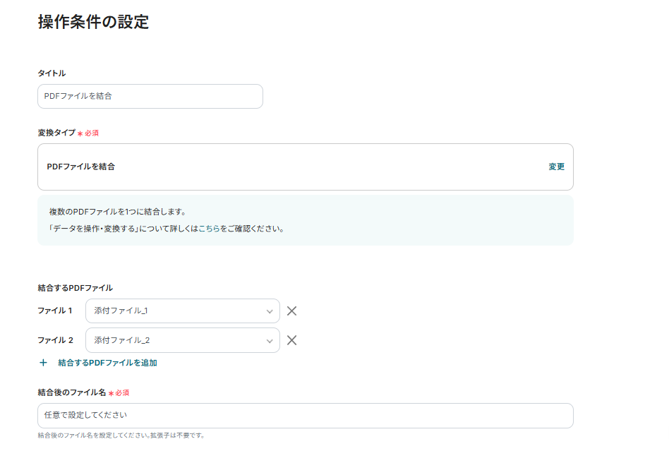 フォームで送信したファイルを結合するための設定を行います。