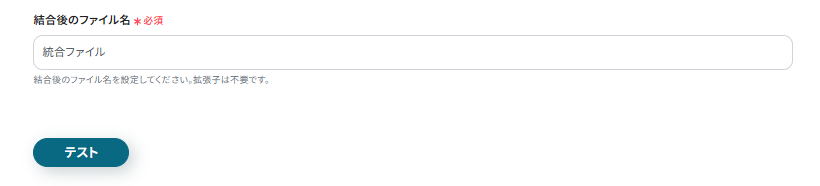 統合後のファイル名をわかりやすいものに設定し、「テスト」をクリックします。