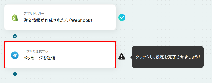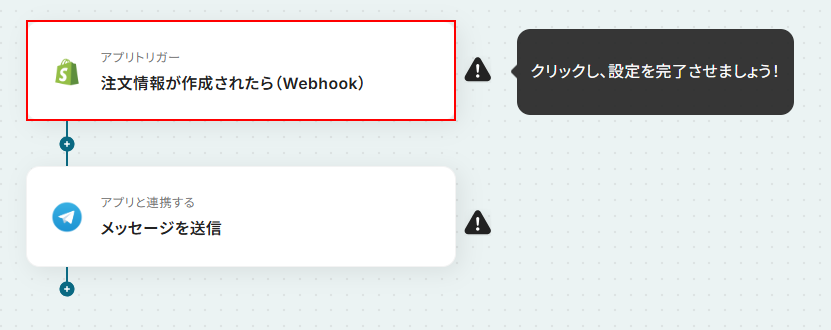 - Shopifyのトリガー設定とTelegramのアクション設定