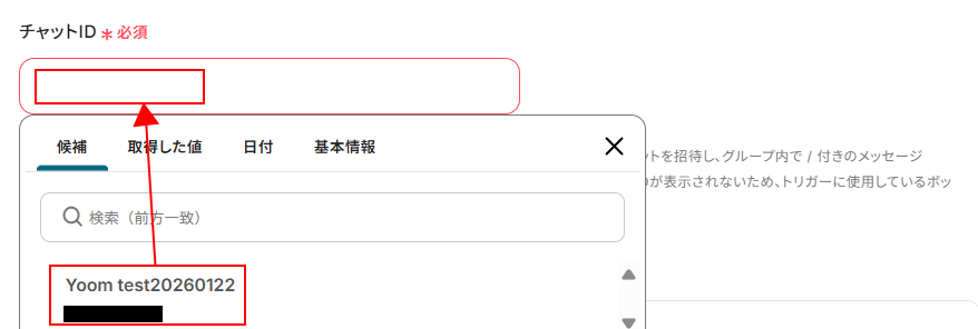 ※すでにYoomで他の連携にボットを使用している場合は、候補内に表示されませんのでご注意ください。
